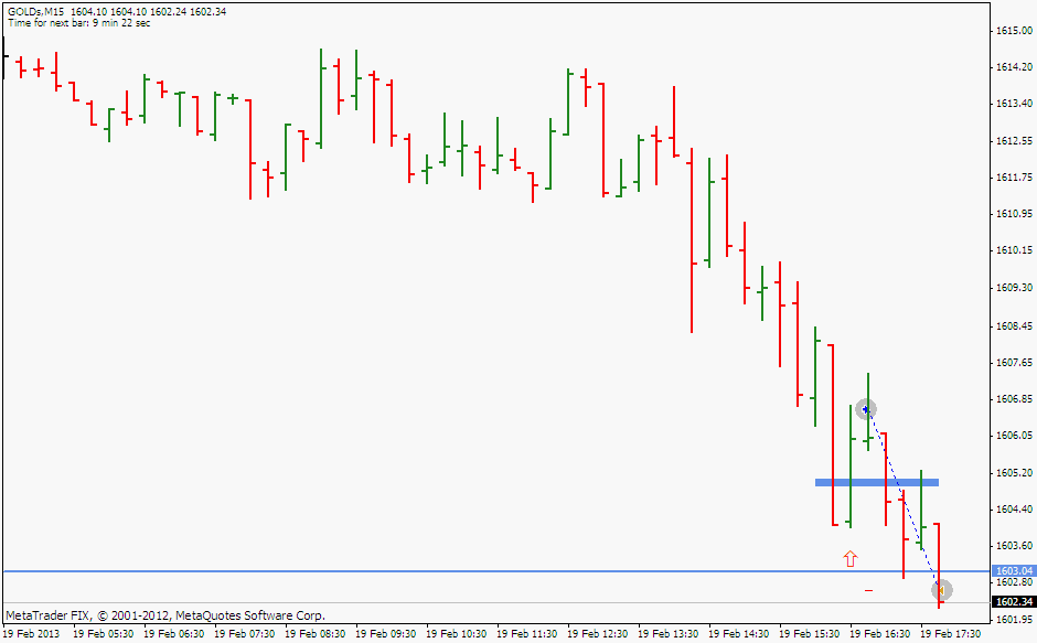 Esta es de hace un momento y aun en pérdidas. Tenía que haber tenido más en cuenta esos maximos anterios del 15 al 20 de febrero . A ver como acaba el trade. La entrada es en un retroceso de la vela con la flecha.
