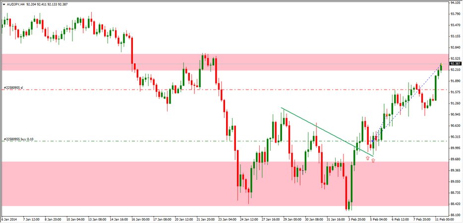 Este trade es de hace un momento, el precio rompe la linea de tendencia , hace un pullback y en ese momento entro sólo con un minilote. La tendencia es bajista y hay cierta resistencia en esa area( line horizontal), así que precaución con largos. Si sigue subiendo añadiré alguno más.