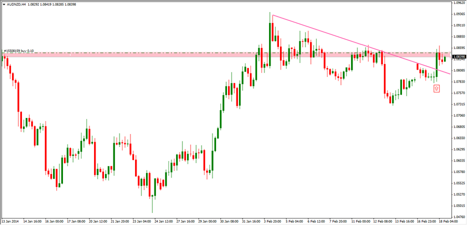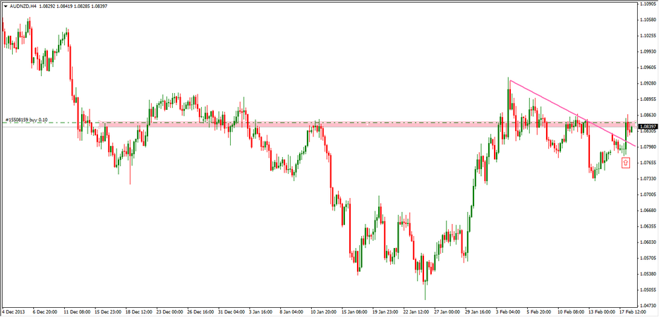 Otro trade del AUDNZD de hace un momento,agresivo, entrada al toque sin más en zona de alta confluencia( 61.8 fibonacci, rotura trendline, mínimos anterioes..) con stop ajustado 20-30 pips.