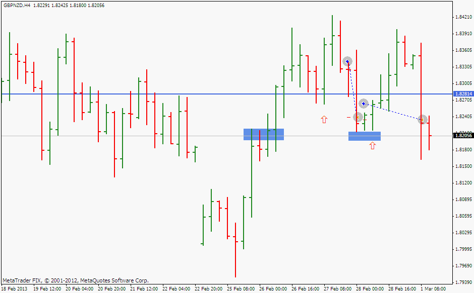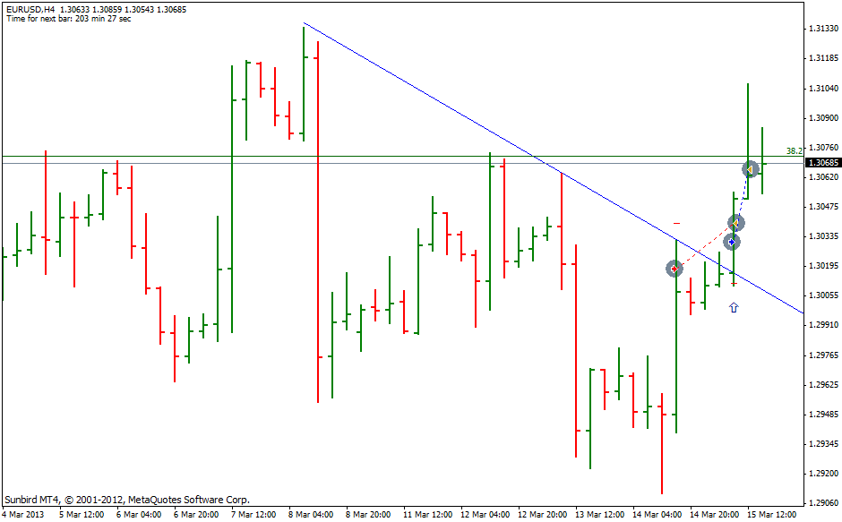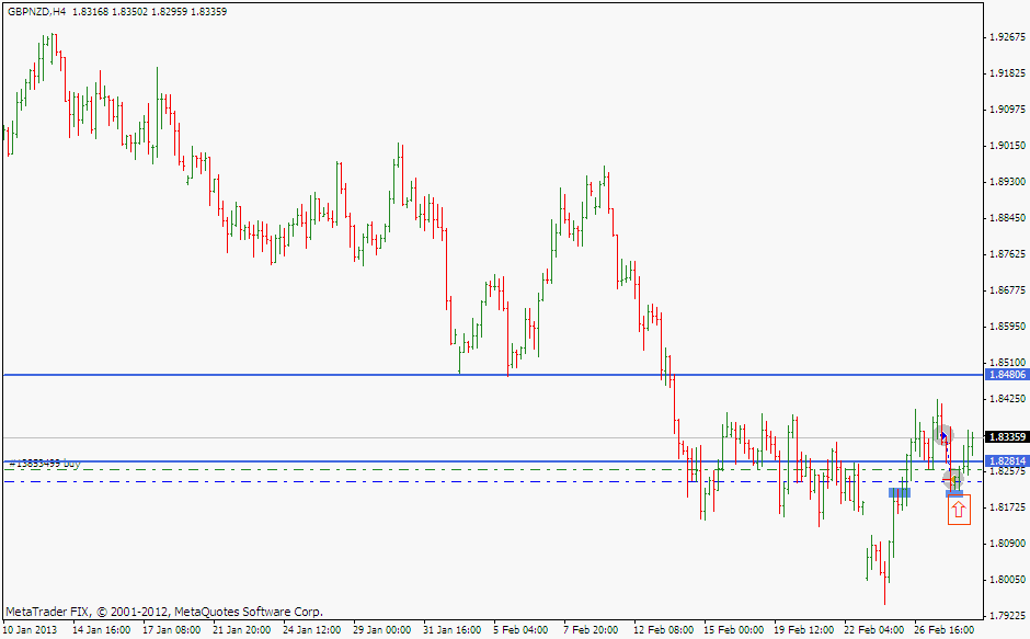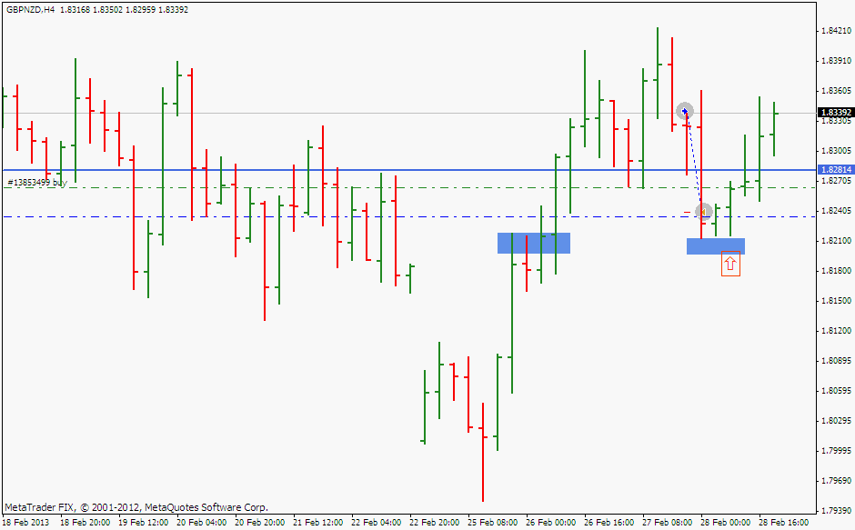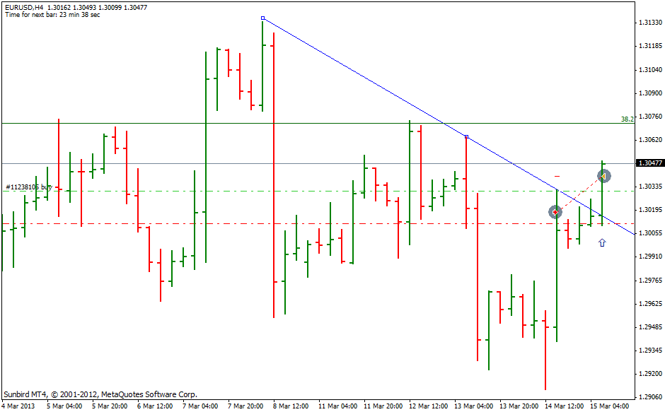 Trade sin price action,sólo resistencia/soporte, trendlines. El precio se ha movido sólo un poco a mi favor, apenas 150 pips. Stop loss de momento 400 pips.