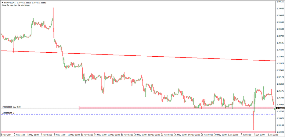 buenos días, Por la noche acerqué el stop y esta mañana ha saltado con una pequeña pérdida de unos 10 pips. Me hubiera gustado ver al precio reaccionar en esa zona sin embargo se quedó toda la tarde de ayer alrededor de los mínimos del día, entonces a lo mejor no había muchas compras en ese area y no merecía la pena. Bueno a por el siguiente trade. saludos