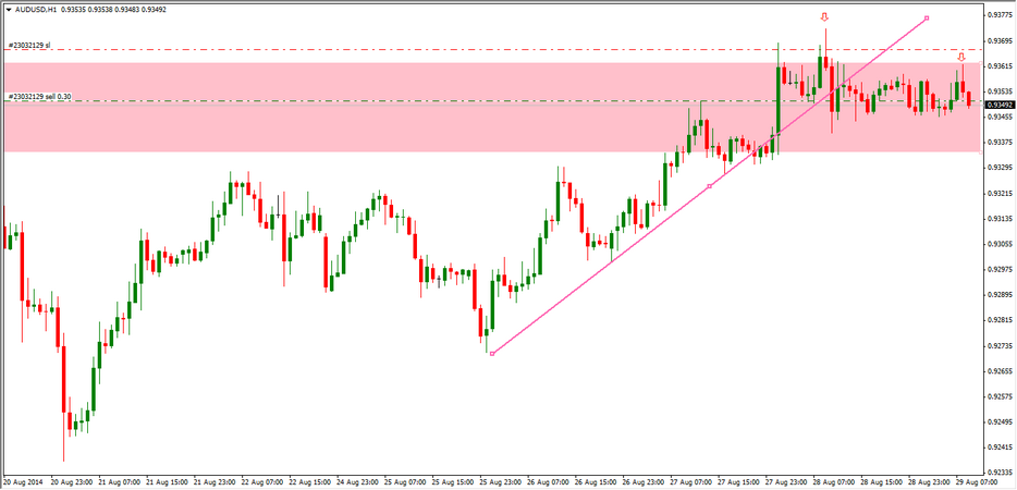Trade corto en el AUDUSD de hace un momento, con stop loss de unos 15 puntos. La zona me gusta regular pues estamos en medio de una consolidación y hay menos probabilidades de acertar con la dirección, sin embargo la zona media de la mayoría de las consolidaciones suele funcionar como soporte/resistencia.
