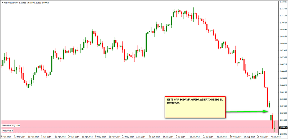 Muchos de los gaps del domingo se han cerrado ya, sin embargo el GBPUSD todavía sigue abierto y el precio se encuentra en zona de soporte. Por estas dos razones acabo de abrir largos en busca del cierre del hueco.