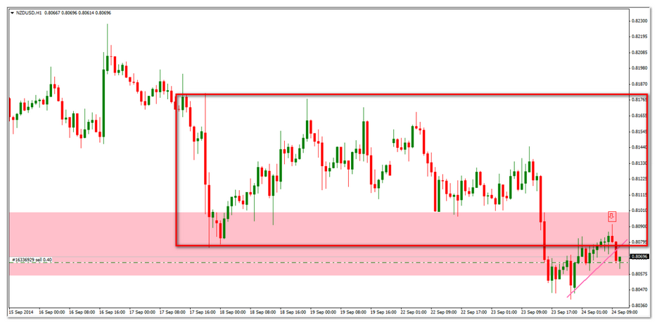 Corto en el NZDUSD, el precio rompió ayer una zona de consolidación que hoy ha sido testeada y rechazada por lo que voy a intentar aprovechar el momentum bajista que lleva el par. El stop por encima maximos del dia.