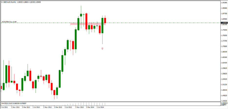 Trade de hace unos minutos en el GBPAUD. Me hubiera gustado que esa envolvente alcista mensual hubiera cerrado más arriba pero bueno es lo que hay. El stop loss no lo he puesto todavía pero iría por debajo de los mínimos del día de momento. Esta madrugada hay datos de AUD importantes por lo que habrá que tenerlo en cuenta. Si sube y pudiese dejar stop en even , sería lo ideal para poder irse a la cama. saludos