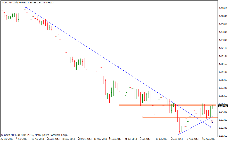 Otra forma de ver el AUDCAD... a ver por donde rompe y como, el precio atrapado entre S/R y por debajo/encima un monton de stops loss a merced de del Market maker. Ahora voy con largos. saludos