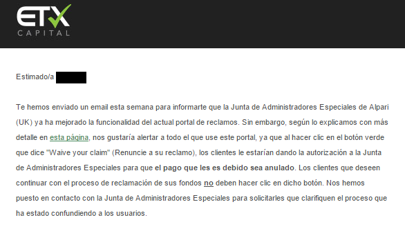 Ayer me llamaron de ETX, esta vez era de Madrid (no de Reino Unido). Les pregunté si era cierto que entre 4 y 6 semanas tendríamos el dinero de Alpari en nuestras cuentas y me comentó que les llevaría entre 4 semanas y 4 meses. Entre tanto estoy probando con una de sus cuentas demo a ver qué tal... Los spreads son parecidos a lo que tenía Alpari.