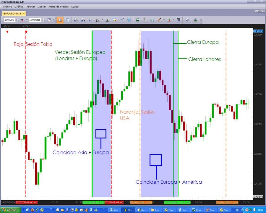 Iré añadiendo más meses hasta completar el año cada vez que pueda. Todos los horarios son GMT y los gráficos 15M. En los siguientes enlaces podeis encontrar el par EUR/USD en los meses de Julio y Agosto. No se si este es o no es el mejor par para observar la fuerza de la superposición de sesiones. Tal vez el EUR/GBP, EUR/JPY, GBP/JPY o el USD/JPY sean mejores. Ahora tengo poco tiempo, pero si alguien conoce alguna razón justificada (más allá de la curiosidad) para observarlos, intentaré complacerlo. AGOSTO: http://rapidshare.de/files/48286512/SES ... O.rar.html JULIO: http://rapidshare.de/files/48286577/SES ... O.rar.html Un saludo. Última edición por feznandoo el 06 Sep 2009, 10:46, editado 1 vez en total