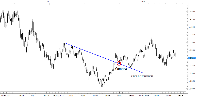 Re: APRENDE Analisis Tecnico de Forma SencillaUn tema que me olvidaba sobre las lineas de tendencia es como tratar los rompimientos. En realidad es una tecnica muy popular pero de mucha importancia. Luego que una linea de tendencia es rota, la mejor forma de operar es esperar que el mercado la retroceda y la testee nuevamente es alli donde deberiamos comprar o vender dependiendo el caso.