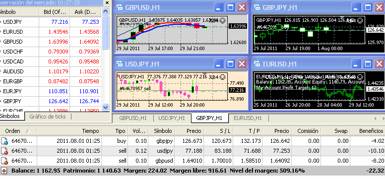 Dime si la imágen que adjunto es lo que te interesa ver. Este Anillo acabo de lanzarlo a Mercado, los spreads pagados son 18 y ahora toca esperar hasta que se produzca la divergéncia. La imagen como veras contiene 4 chars, pero el de EUR/USD no interviene en el FPI, solo contiene el E.A. que cierra todas las posiciones si obtenemos un profit de 12 pips que sumados a los 18 de los spreads, estamos buscando una divergéncia de 30 pips. Saludos, Enric Ni Toros, ni Osos, lo importante es el Precio