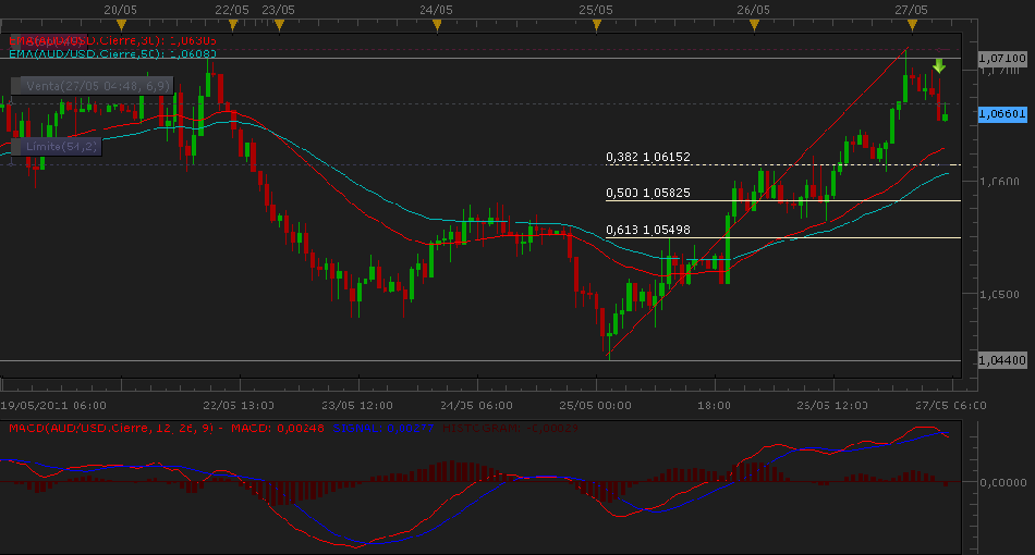 Re: AUD/USDpues miren como ha cambiado el patio,saltó el stop y miren com queda la cosa:superacion de resistencia horizontal y la bajista e grafico de 4 h. el rebote en el 38 fibo en grafico diario cobra fuerza......MACD alcista por encima de 0 y cruce de medias al alza,se ha de ver la siguiente vela......