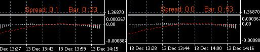 Perdona por el retraso en contestar, pero estaba un poco liado. Lo has dejado exactamente como quería... y lo de las horas como dices, no lo voy a usar porque lo quiero para timeframes de 1 hora como mucho. Va muy bien tener el spread a la vista y sobretodo lo del tiempo que le queda a la vela para cerrar, porque en esos últimos minutos veo que suele haber bastante movimiento. Para rematarlo... sería muy guapo que pudiera dar los pips de ganancia y de pérdida. O sea... Spread: 0.1 Pips: -7 Bar: 0:23 Claro que sería mas facil hacerlo tomando referencia del precio de compra o venta inicial. Para hacerlo mejor... habría que complicarse bastante y programarlo teniendo en cuenta el spread del momento. Muchisimas gracias! ![]()