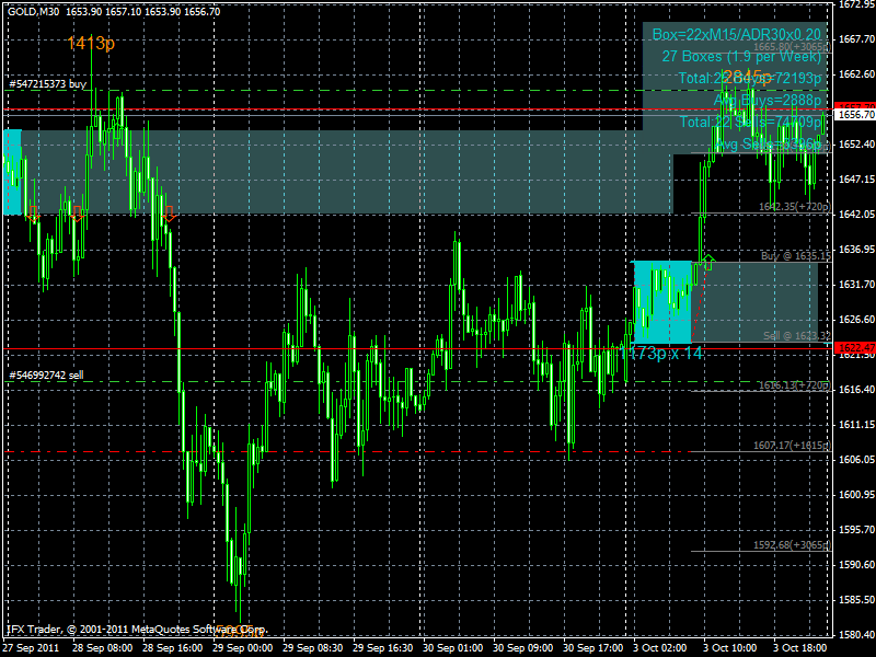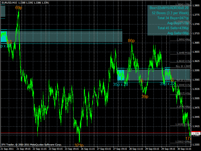 se busca programador para automatizar un indicadorhola se busca programador para automatizar un buen indicador escribirme a suarezalvarez@yahoo.es he tradeado con este indicador durante un mes y es increible esplico brevemente como comercio con el susodicho indicador espero que me abran los dos rectangulos el azul y el gris mas largo y despues nada mas que me señale la flecha de color verde o rojo entro en compras(flecha verde) o en ventas (flecha roja) el sl en el principio del rectangulo y el take profit espero que me refleje en pantalla el numero indicado en amarillo ejenplo de operacion con el grafico arriba indicado eur/usd m30 entraria en el momento que me se reflejara la flecha roja el dia 30/9/2011 a las 6.00 am con valor de 1.3541 se pondra sl en 1.3601 y se cogeria beneficio hasta que se reflejara en el monitor el numero en amarillo (p 378) y hay cerraria la operacion en el sl se puede mober para garantizar beneficios(trailing stop) vale para cualquier par y temporalidad