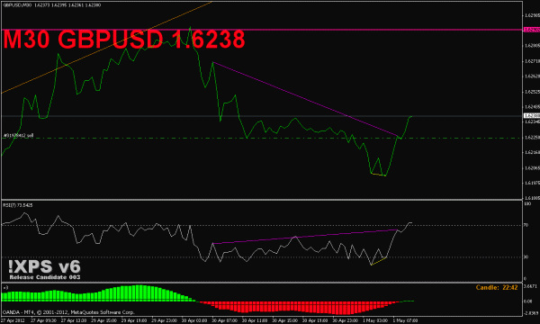 Re: Buscando Compartir Ideas Sobre DivergenciasGBPUSD , divergencia 30M , no la tomo porque la veo muy estrecha , esta en soporte , pero tiene una divergencia oculta lo cual no me inspira confianza , ya confirmando entrada , aqui pongo la imagen lineas magenta divergencia oculta .Parece ser un pequeno pullback , no lo tomo , veremos que sale