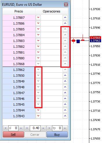 También soy nuevo en el foro aunque os llevo leyendo desde hace unas semanas así que un saludo a todos. Resulta que quiero poner una orden Buy Stop unos 15 pips por encima del precio actual, pero el Metatrader solo me deja colocarla unos 25 o 30 pips por encima del precio actual. Adjunto una imagen para que se me entienda mejor: Si os fijais en el recuadro rojo, las casillas para hacer buy stop estan deshabilitadas, con lo cual no se puede hacer dicha operacion en esos rangos de precios. Ocurre lo mismo auque cree la orden desde la pestaña 'Nueva orden' o aunque la cree a un precio superior y luego la modifique. En este último caso el log del MT muestra algo parecido a : '1567638': failed modify order #33078400 buy stop 0.40 EURUSD at 1.37896 sl: 0.00000 tp: 0.00000 -> 1.37881, sl: 0.00000 tp: 0.00000 [Invalid price] Pasa exactamente lo mismo con las ordenes sell stop. ¿Es una limitación del propio Metatrader o es algun tipo de norma general? ¿Sucede lo mismo en cuentas con dinero real? Gracias de antemano. This is my music, it makes me proud, these are my people and this is my crowd