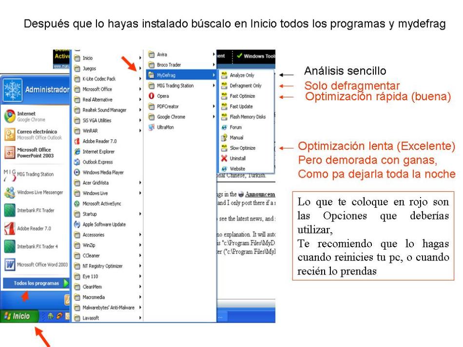 Hola manu58, estas herramientas te sirven para todos los pc, seria bueno que le pasaras primero el http://www.ccleaner.com/ este lo puedes instalar en español y te va a limpiar todo el pc, despues le pasas Mydefrag ahi te dejo unas indicaciones espero te sirva.. Saludos. Te explicamos cómo crear una estrategia de trading Paso a Paso. ¡Comienza a ganar dinero en Forex! https://multidivisas.org/