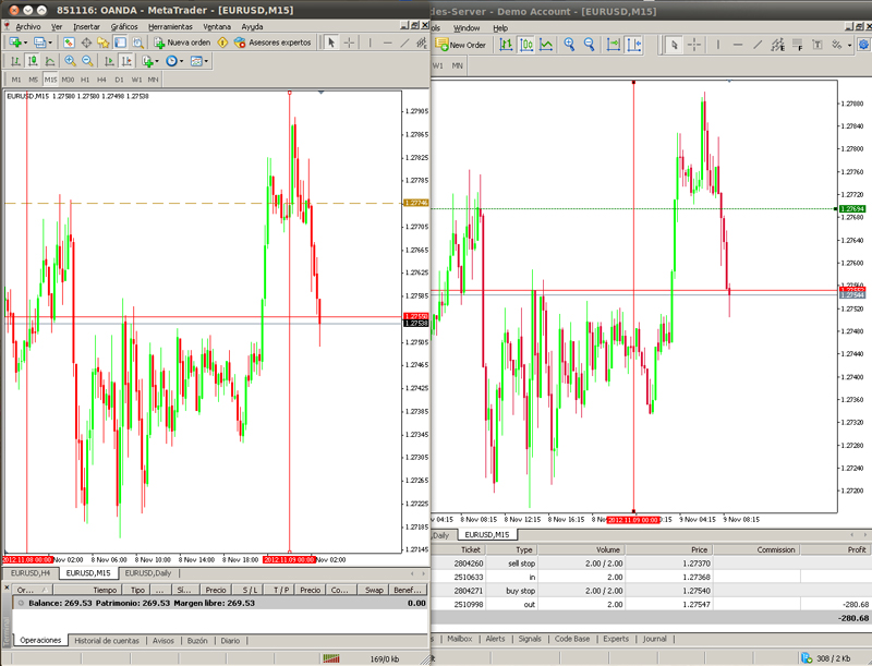 El caso es que he creado dos cuentas demo, una en oanda y otra en activtrades. Al comparar las gráficas, ni las velas son iguales, ni los precios (independientemente del spread) ni las apertura a las 00:00... Alguien me podría dar alguna explicación. Iba a abrir mi primera cuenta real y la verdad es que no se con quien ya que estoy un poco mosca. ¿Cual me aconsejáis de todos los que hay? Un saludo y muchas gracias.