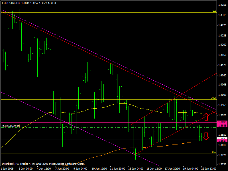 Re: Cazando Pips - Mi diario de tradePending order en EURUSD, 1,3822, tp 100 pips, SL 13910. Motivo: PinBAR en 4 hs, con dobre soporte en 1,3826