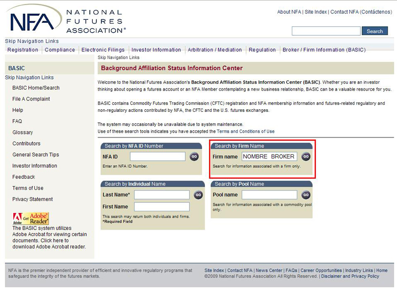 Puedes buscar los de la NFA aquí: http://www.nfa.futures.org/basicnet/ Un saludo.