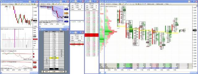 yo uso el ninja trader para ver la muestra de volumen que me ofrece el contrato 6E de futuros sobre divisas. mi broker ahora es Mirus con fuente Zen Fire, aunque hay mas opciones disponibles, como CQG, Mira en el pantallazo que te cuelgo las pijaditas que puedes ver sobre volumen, ..de derecha a izquierda 1. Aplicacion delta "Market balance", con ella puedo ver si los prints en la cinta son compras o ventas, un usuario de otro foro, me lo explicó y resulta que el programa compara los prints con el grado de absorcion del SDOM, por tanto , puede determinar si los prints son sell markets o buy markets. 2. Varias cintas filtradas, para mi comodidad, pero la cinta plasma todas las ejecuciones sell markets y buy markets, el problema con leer esto a solas es que a veces no sabemos si las ordenes son limit o a mercado, bueno son a mercado pero no sabe si son absorbidas o no... por eso el delta 3. el SDOM, muestra en 5 niveles por arriba y abajo del precio, las ordenes limit 4. el Vwap, es un chart de velas, normal y corriente, donde se le han añadido la disposición de las desviaciones de acuerdo a unos cálculos que hace sobre precio y volumen 5. El Better Volumes, PVI y NVI, para ver la evolución del precio respecto al volumen, puede usarse para determinar la actividad de las manos fuertes y débiles, no obstante este indi lo puse ayer y no se que utilidad puede tener. Creo que fue uno de los primeros para seguir el "dinero inteligente". El resumen, es que todo esto ayuda, pero no te asegura rentas, sigue siendo muy difícil. Para mi trading basado en precio, volumen y tiempo, es lo que mejor me va Por otro lado, tengo en otro pc, el market profile, que ya ha sido explicado en un hilo de este foro, ademas añadi algun tutorial con videos ...y bueno aunque no mucho, algo de info hay en español por la red. Lo peor, es que sale bastante dinero si sumas todo, ![]() ![]() saludos link http://imageshack.us/photo/my-images/832/muestradevolumen.jpg/