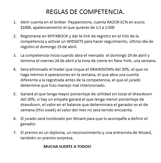 Re: COMPETENCIA FXS 1 semana.Aquí están las reglas de la competencia, alguna duda' pregunten.