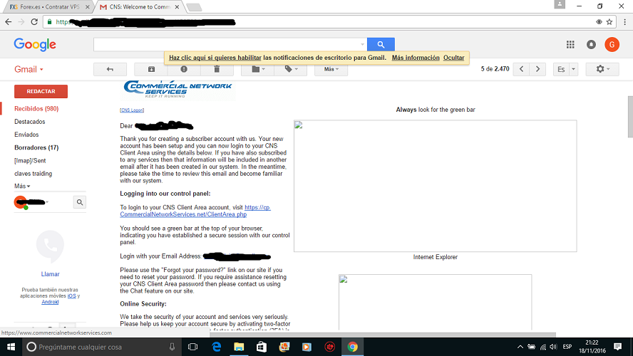 Re: Contratar VPS CNS paso a pasoUna vez contrato el servicio me envian este correo en el que pinchado en el enlace que viene subrayado en azul entremos a nuestro perfil donde existen diversas configuraciones