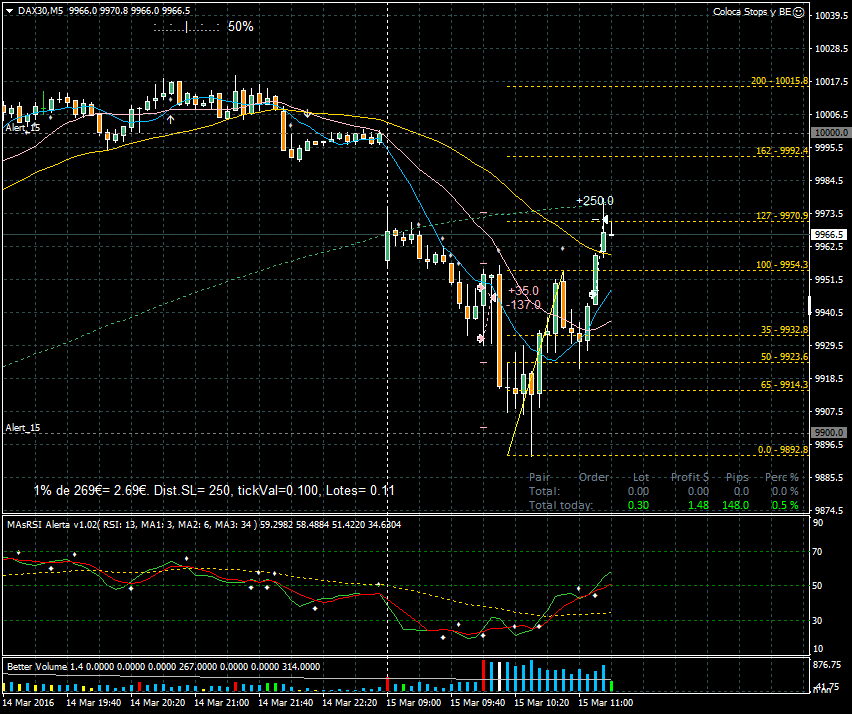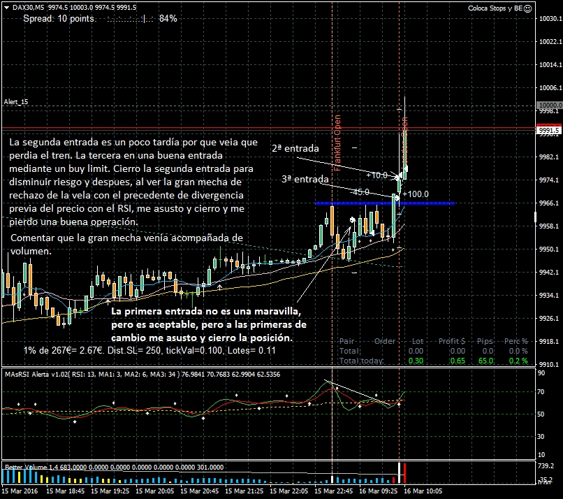 La entrada la hice a la superación del maximo anterior en fuerte tendencia alcista. El cierre en el super numero redondo 10.000. Conseguí +27.2 puntos. Ahora estoy en otra operación pero no va muy bien. A ver como acaba. Saludos.