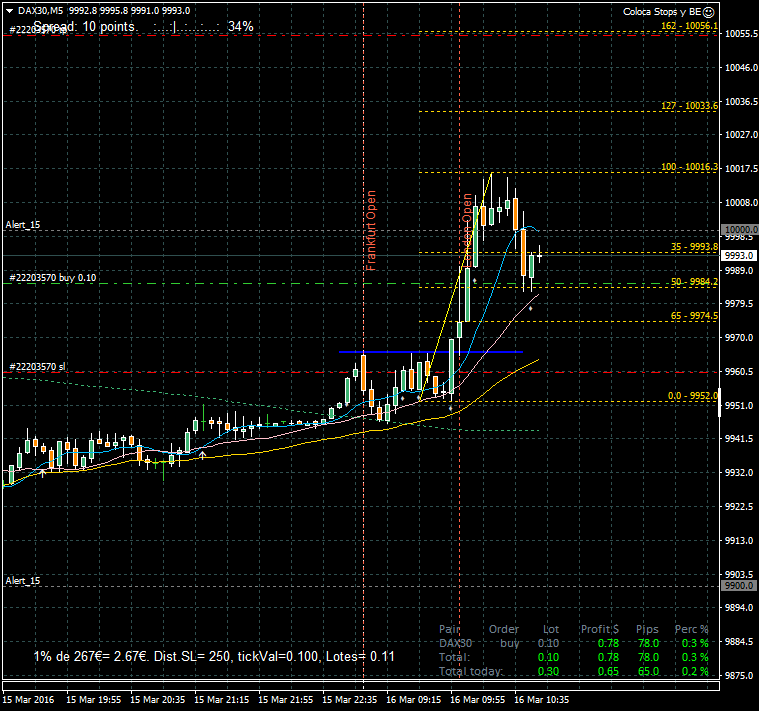 Re: Diario de SintesisHola Síntesis, veo que operas el Dax, muy interesante. Yo últimamente opero mucho el Cac y utilizo el Dax para cubrirme si las cosas no van como tienen que ir.