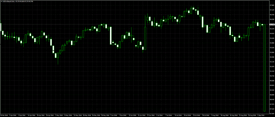 No he encontrado la informacion pertinente de esta diferencia de datos.. De todas maneras traigo otra cosa mas impresionante aun. Conoceis el DOlar Index verdad? BUeno pues el 6 de septiembreme conecto a las 6 PM, y veo que tiene una spike de 350 pips bajista. SI 360 pips !!! que si que si. Mirar el grafico !!. EN el MT5 no tenia los mismos datos ni en otros activos de MT4. Llamo al broker activtrades y le pregunto que como puede ser eso a lo que me responden que es un error tecnico !! en 5 minutos desaparece. Que pensais de todo esto?? me gustaria conocer vuestra opinion antes de publicarlo en otros medios. Gracias. Alber