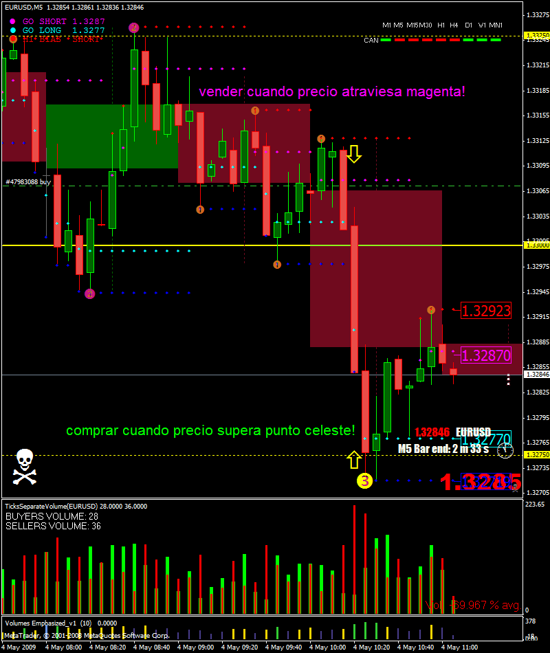 Ese indicador si que lo hizo TRO, esta en kreslik, pero no sirve para mucho. Me hacia gracia, te dice si hay mas compradores o vendedores en la actual vela, pero de un momento a otro cambia, osea que no sirve.