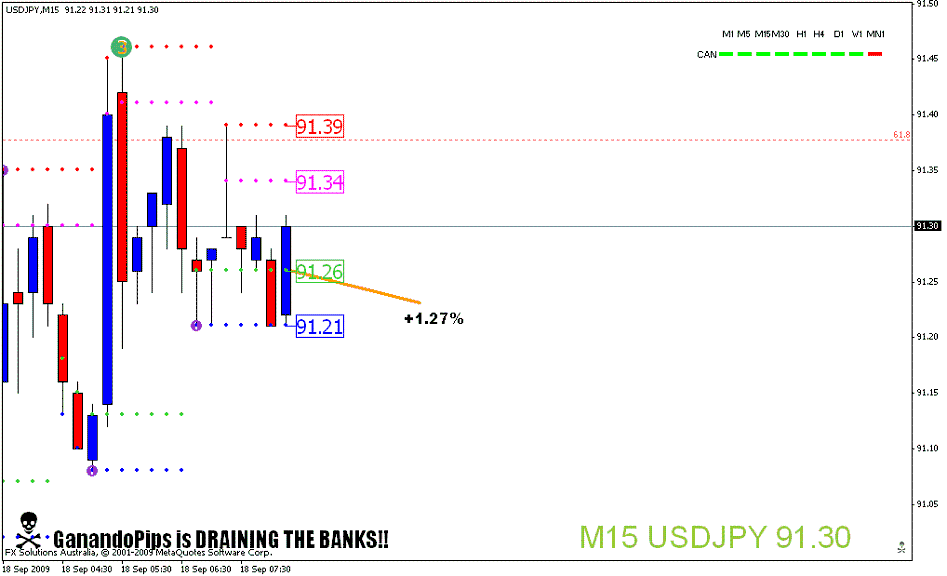 Bueno hace un par de días que no escribo, en realidad estoy muy apretado de tiempo. El tiempo libre lo dedico a otra cosa que no sea en un computador, dado que la mayor parte del día lo paso estudiando, tradeando, estudiando y tradeando... esa es la rutina de mi día y en realidad estoy muy pero muy conforme con los logros alcanzados, gracias a los participantes activos de este hilo empezando por ninpojutsu, ganandopips y otros que me colaboraron con la aplicación de esta estrategia. En cuanto a mi operativa con la estrategia solo puedo decir que es espectacular, después de probar muchas otras estrategias de Scalping definitivamente me quedo con esta. Para aquellos que aun no la dominan solo me queda decirles que deben practicar, practicar y practicar, tal vez muchos tengan desconfianza de los comentarios de algunos foreros que decían no tener perdidas en su trading ( never lose again). Al principio es muy probable tener perdidas es parte del aprendizaje, pero al fina la constancia será premiada, de eso se trata el sistema de no salir con perdidas. Recuerdo en esta semana cuando le comentaba a ninpojutsu que en una operación me había asustado por las perdidas y la cerré con 0.65 USD en negativo después de ir unos cientos en contra, me gane un regaño, jajaja, me dijo que esa no es la idea de la estrategia, la operación debe salir en positivo. La práctica es muy importante ya que esta debe llevarte a la confianza en tu forma de operar, al principio es muy probable e importante que cometas errores, así conoces todos los puntos peligrosos del sistema (Operar en fundamentales, Descuidar alguna operación, manejar tamaños de lotes exagerados, entre otras). En fin, con ninpojutsu concluimos que el punto determinante de éxito con esta estrategia es la perseverancia, el sistema esta dado depende del trader la efectividad que tenga.