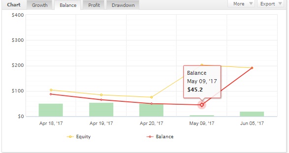 Ese DD esta calculado sobre el balance, que llego a 45 en mayo, aunque la equiti estaba en 202... Es un fallo que tenia Myfxbook, calculaba el DD en base al balance y no a la equity... ahora en todas mis cuentas eso se normalizo y me lo calcula bien, no se porque en esta de dani sigue calculando sobre balance. El mínimo equity registrado fue 75usd de una cuenta de 100usd Corrijo: incorrectamente, en esa pestaña, a mi también me lo sigue calculando sobre el balance...