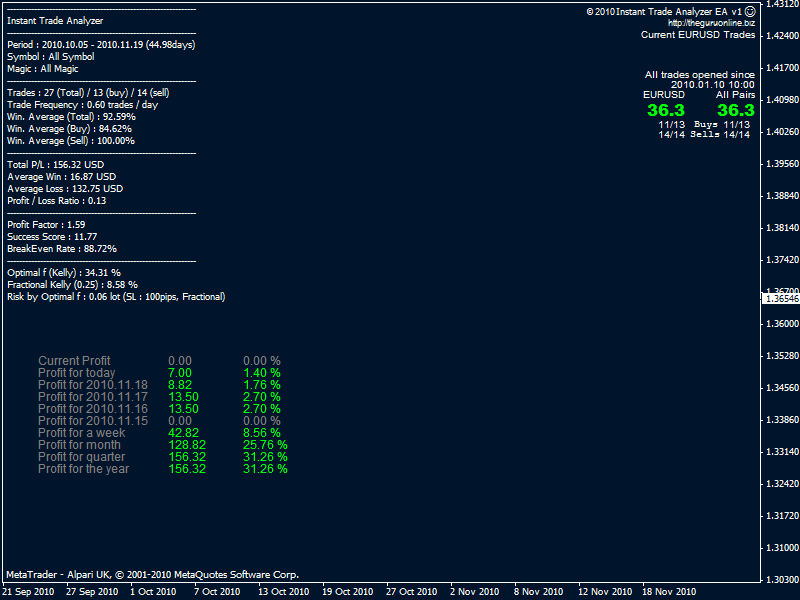 Re: Estrategia millón de dolaresNo, la verdad es que mi idea de ir a por 3 pips, y esa cosas no funcionan, asi que ya lo descarto. Me sigo quedando con la primera idea del post, el sistema como se exponia al principio. Pero por mas que miro objetivos y stops, me es dificil encontrar algo bueno que no pierda. En la excell todo me parecia bonito, pero el MT4 no engaña, y se queda a 0. El caso es que me encanta ese money management, porque se arriesga muy poco y puedes empezar con poquisimo capital, pero lo dicho, se queda a 0.