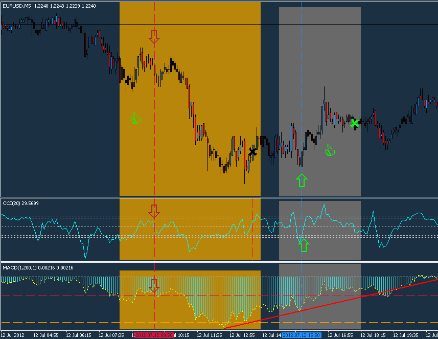 os he puesto las entradas de los días 10,11 y 12 de este mes de julio en el euro (De las 6 operaciones de estos tres días hay un stop, cor tito).Esta estrategia tiene otras variables para los amantes de las grandes temporalidades o personas que no tienen tiempo de operar los 5m y quieren coger las tendencias.Espero por supuesto que cualquier mejora la a portéis.Entiendo que con las imágenes queda bien explicada la estrategia,hay tres variables en los gráficos que expongo corto,largo y contra tendencia. Los mejores resultados los da en tendencia los rangos están muy filtrados por lo que apenas da falsas. Lo mejor de la estrategia,siempre vas en tendencia diaria,las contras solo cuando esta muy sobre comprado o vendido por lo que las vueltas están cerca cuando entras o entras en ellas. Los horarios para operar esta estrategia es la sesión europea y americana. Tef_5m CCI:20_Niveles 0,100 y -100. MAC:1,200,1 Saludos.frafa. Última edición por frafa el 14 Jul 2012, 20:23, editado 1 vez en total