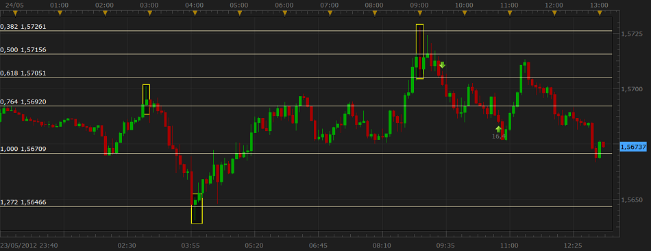 Los niveles de fibonacci los pongo en el máximo y el mínimo de la semana anterior. Si se ven superados no pasa nada porque tengo marcados también los niveles 123, 138 y 150 y 167... (No creo que haga falta explicar esto, pues ya hay mucha información relacionada...)