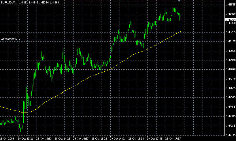Re: estudiando el EURUSDla anterior resistencia de 1.4833 se nos ha convertido en soporte, si el par rompe ese nivel y llega a tocar la WMA, cerraré la operación manualmente