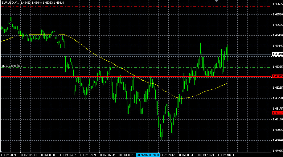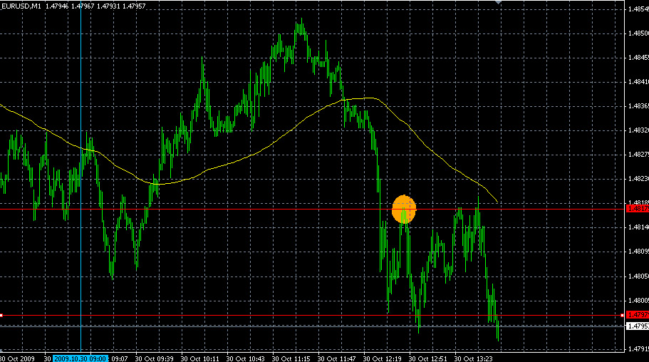 Re: estudiando el EURUSDcierto, en gráfica de 1 minuto tenemos un soporte en 1.4833 aproximadamente y la resistencia se nos ha colocado en 1.4850, como en el gráfico de 1 hora