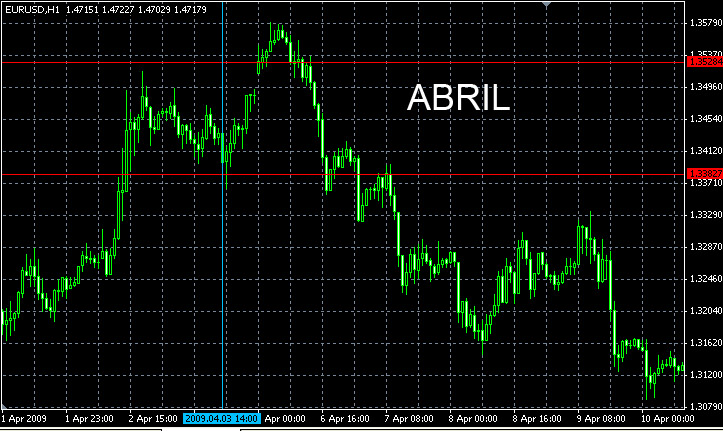 explico un poco a qué me refiero con que el proximo viernes es un dia importante como muchos sabreis, el primer viernes de cada mes se dan las noticias de Non-Farm Employment Change y Unemployment Rate ¿qué tienen de interesantes estas noticias? pues simplemente mirad los gráficos que he subido, corresponden al primer viernes de cada mes desde enero de este año hasta octubre ese dia, el viernes, no operaré como venimos haciendolo estos días, sino que me centraré en operar el breakout del rango ¿cómo lo hago? pues pongo el soporte y la resistencia unos pips separados del rango y entro a partir de las 14 horas cuando rompe el soporte o la resistencia este es otro sistema distinto al que venimos usando, no esperamos rebotes ni nada, simplemente entramos cuando el soporte o la resistencia es tocada como veis la única condición que tengo presente es que el mercado este en rango, si no es el caso, simplemente ignoro este sistema y continuo con lo que venimos haciendo, como es el caso en el mes de marzo y julio en esta operación arriesgo bastante capital ya que es un movimiento bastante importante, y el ratio que se debe utilizar es al menos 3:1 (beneficio:pérdida) siendo el soporte y resistencia inverso el stoploss de la operación pero bueno, hasta el viernes seguiremos como lo vamos haciendo jeje. mención especial decir que el jueves el par, si entra en rango aburrido y monotono, es una buena señal Última edición por Morillo el 31 Oct 2009, 05:58, editado 2 veces en total