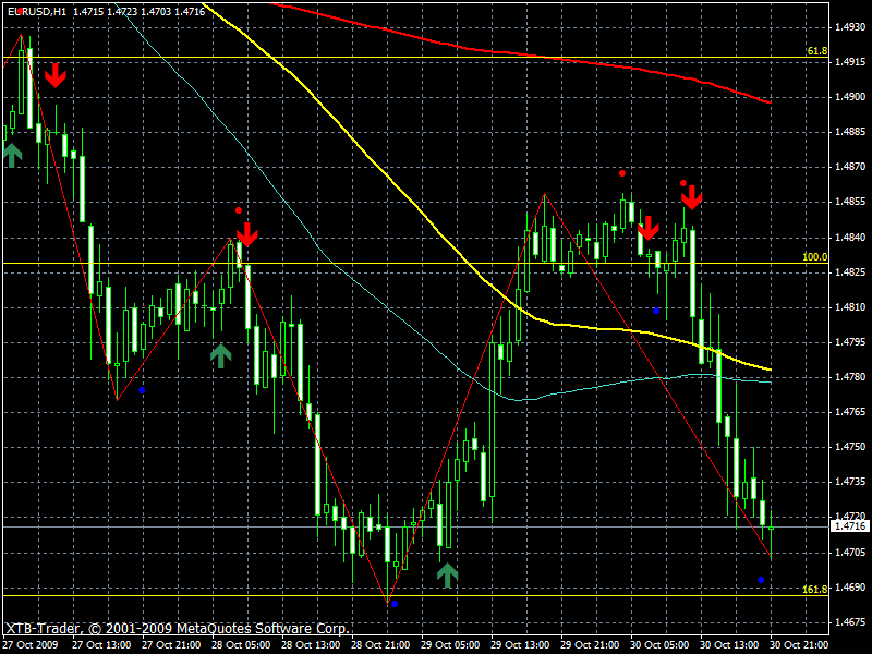 Re: EUR/USD:29/10/09A ver si akí se puede ver mejor. Aunq no se ve la linea del 161.8, aparece el número en amarillo dnd la tengo colocada, Q opinais sobre esto?