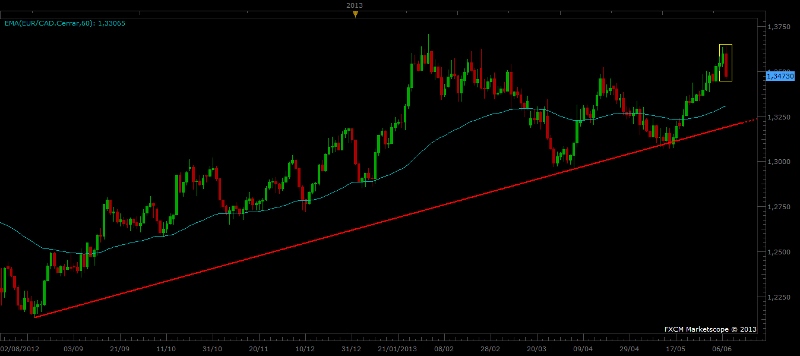 Re: EURCADEn EURCAD no soy imparcial ya que espero que suba hasta mi TP. En este momento estoy en BE tras el gatillo del viernes. De todos modos si regresa a soporte, al ser la tercera vez me pensaría bastante si tomar o no una nueva posición. En el lado contrario está la resistencia pero aun le faltan muchos pips hasta ella para tener la en cuenta: