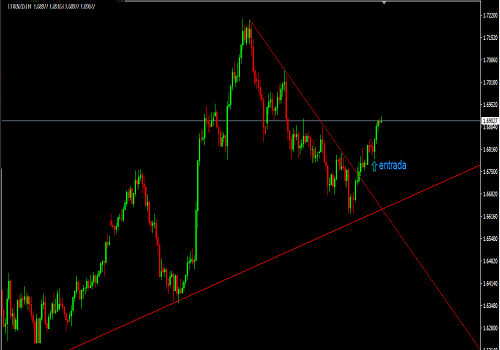 y el siguiente grafico a la entrada en la rotura de la linea de tendencia de minimos decrecientes yo esperaba el pulback `para entrar , no se produjo