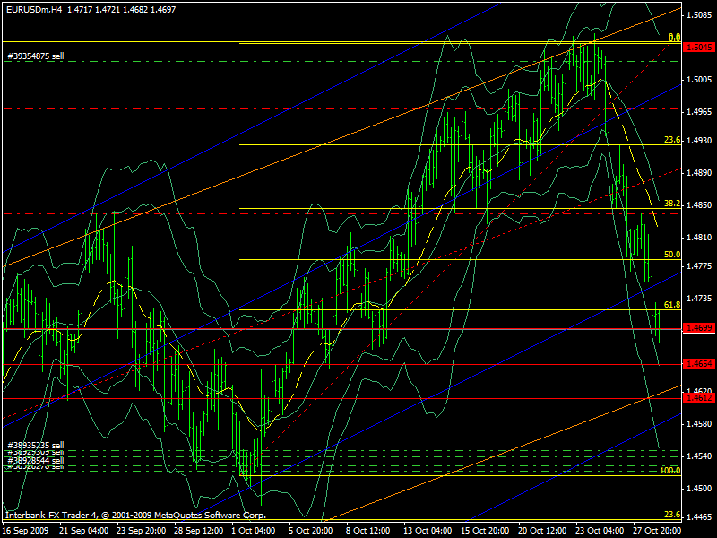 zona 1.4700 (es el nivel 61 de fibo) zona 1.4665 (previos soportes) zona 1.4612 ( previos soportes, y canales sengun mis graficos) Adjunto el gráfico, sorry por el desorden, pero yo me entiendo Igualmente este semana pesan mucho los fundamentals. El EURO se aprecio en demasia estas ultimas semanas. Los numeros en EEUU, no están saliendo para nada buenos por otro lado. Entonces la "excusa" para la correccion es el miedo al riesgo. Y la correccion propiamente dicha, que viene luego de una corrida importante como la que vimos las ultimas 3 semanas Mariano