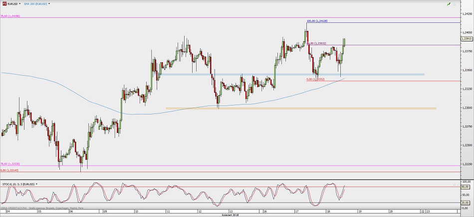 EUR/USD: la resistencia pasadaEl par EUR/USD ha roto la resistencia en 1.2380, que estaba compuesto por el retroceso Fibonacci del 61.8% y el máximo establecido esta madrugada. Por lo tanto, el movimiento tiene el camino abierto a 1.2410, niveles de los máximos de ayer, 1.2380 se convierte en soporte.