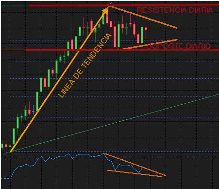 En el grafico adjunto de la temporalidad MENSUAL observamos una tendencia bajista con retrocesos considerables que han dado paso a la creación de una línea de tendencia. Los puntos a considerar son: el Soporte ubicado en 1.1876 y la Resistencia ubicada en 1.5144. En grafico SEMANAL podemos observar la formación de una tendencia alcista gracias al gran retroceso que formo la tendencia en temporalidad mensual. Lo que podemos esperar es que empiece el retroceso de la tendencia semanal y esperar un rebote en dicha línea de tendencia en convergencia con cualquier nivel Fibonacci ya sea en 61.8% o 50.0%. Los niveles a considerar son: el Soporte ubicado en 1.2586 y la Resistencia ubicada en 1.4158. En Time Frame DIARIO se puede observar un gran momentum alcista seguido de un mercado que casi por 16 días ha permanecido lateralizado dando lugar a la formación de una figura chartista mixta muy particular llamado triángulo simétrico que además ha sido confirmado por el oscilador RSI. Lo que se puede esperar con esta formación es que el precio rompa al alza con una vela de decisión y buscar oportunidades de compra en gráficos menores. Debido a que los triángulos simétricos son figuras mixtas no debemos dejar pasar la posibilidad de que el triangulo rompa a la baja, si este fuera el caso, personalmente me abstendría de operarlo ya que estaríamos en contra de la tendencia general del mercado. En conclusión para operar actualmente este par es muy recomendable hacerlo en gráficos intra-diarios respetando los Soportes y Resistencias marcados además de las líneas de coincidencia que forman el triangulo simétrico, y, si la probabilidad de que el mercado rompa la figura chartista al alza se cumple se debería operarlo con una señal o convergencia en su pull-back, esto para mejorar la relación Riesgo-Beneficio de la operación. Nos vemos en la próxima. dgeap_trader Última edición por FXWizard el 01 Nov 2010, 11:36, editado 2 veces en total