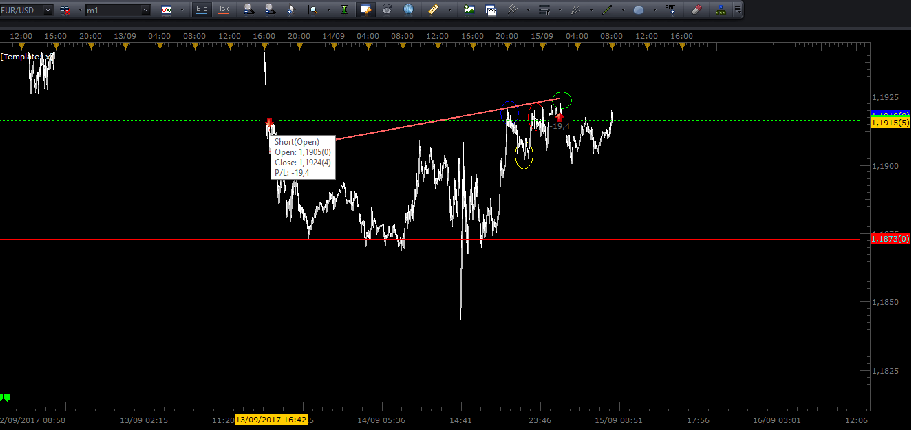 Estoy abierto desde ayer a las 16:31 Spain Time. Ha chocado esta madrugada en el soporte de 1.1873 con 40 pips de beneficio y ahora va a volver a 0 pips,