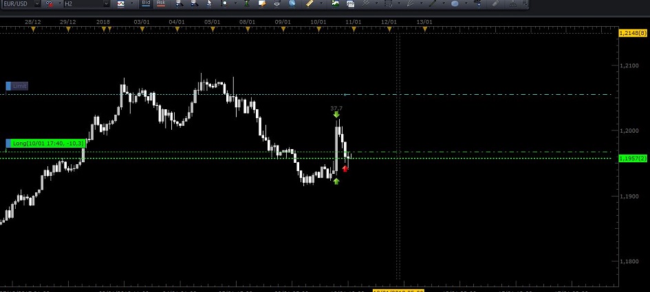 Re: EURUSDEsta mañana entramos al romper el precio de 1,1949 y obtuvimos 38 pips como muestro en la imagen, ahora hemos vuelto a entrar en la zona de 1,1967 teniendo como objetivo antes de la resistencia de 1,2065