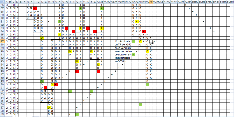 Como te he puesto en el mensaje anterior, 50 pips de tamaño de caja es mucho. Creo que tiene que "verse" que se mueven a la par. Prueba con 10 que es lo que yo uso en 4H. Por otro lado, no puede haber una reversión de solo un 0 ó X como veo en tu hoja. Independientemente del tamaño de la columna anterior, para hacer una nueva en sentido contrario, ha de ser equivalente al tamaño de reversión (3). Es decir, si tenemos al precio subiendo por la columna M, no puedes empezar una columna (N) en sentido contrario si el precio no recorre el equivalente a 151 pips en sentido contrario (si la configuración es 50 x 3, hay configuraciones como la de Wyckoff, que si son con 1 caja de reversión: 50 x 1 ó 50 x 2,...). Ya sé que es un rollo (lo he hecho cada vez que decido añadir un par o acción o índice) pero te recomiendo que borres todo y vuelvas a empezar de cero. Un consejo: recopila solo los precios de cierre de, aproximadamente, un mes (para crearte un histórico) y sigue mi tutorial. Cualquier duda, aquí estoy. ![]() Sl2. http://navarinversiones.blogspot.com/