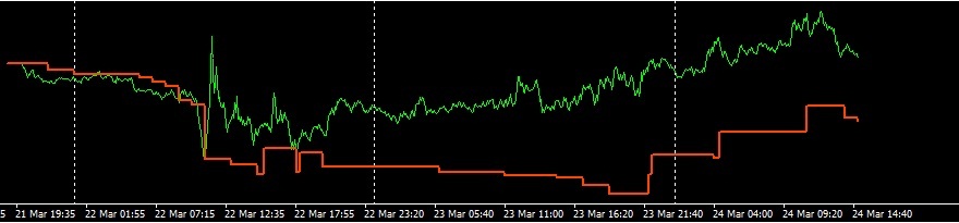 Bueno es que realmente aun esta muy muy verde para hacerle un backtest... esta es la primera versión y muy muy básica, hay que ponerlo a trabajar, y analizar cada operacion, ver donde abre, las que abre y son malas, porque suele ser, como se podrían filtrar, que cambiar, que MM usar, usamos tralling? con que configuración? dejamos correr, TP fijo? SL fijo? o salimos a contraria? y si agregamos una EMA lenta que nos haga de profit o SL? cambiamos un indi? agregamos? que tal se comportara una EMA?... la ponemos encima del gráfico y vemos que hubieran sido de las op. malas que hubo... Son muchas cosas las que hay que mirar... no sabemos ni siquiera si esta bien programado y esta abriendo donde debe... Entonces yo lo que recomiendo a quien quiera colaborar es que primero ponga el EA y los indis a trabajar tal y como esta en algunos pares... no demasiados porque sino se hace difícil hacer un seguimiento... y poner los gráficos con los indis tal y como es la estrategia y dejarla trabajar... e ir viendo lo que comento... ahí es donde irán surgiendo ideas... con las operaciones abiertas sobre gráfico. Para los mas impacientes pueden hacerlo sobre backtest visual, pero que quieres que te diga... a mi no me convence, pero cada quien tiene sus modos Yo esta semana tuve poco tiempo para darle seguimiento. Y otros proyectos y trabajos me han consumido mayor parte del tiempo. Pero seguiremos mirando... puse una versión con un MM especial, que de dar frutos ya lo compartiría y/o comentaría. Muchos compis están de vacaciones así que paciencia. Un saludo! PD: ahora te releo y veo que lo has puesto en real Esta es la curva que dio esta semana: (linea roja es balance y verde es equity) Lo tengo a 0,01 lotes, como esta por defecto... SL100 - TP100 y salida a señal contraria, sin trail... si hubiera quitado el TP (Puesto a 1000 por ej.) tal ves esas operaciones que fueron en beneficio hubieran seguido corriendo... no las mire... El DD fue de 40 euros... “No sirve para nada proclamar la verdad en economía o recomendar cosas útiles. Es la mejor manera de hacerse enemigos” A. Kostolany
