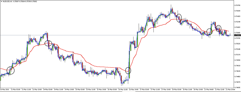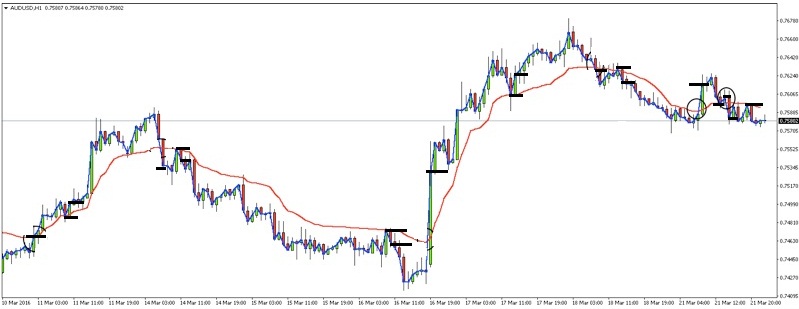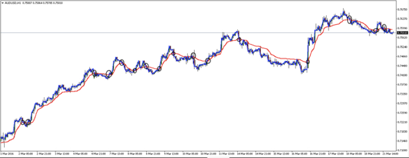 La idea que comentas no es mala, pero si te fijas las señales falsas son muchas mas de las que tu haz marcado, en concreto los cruces fueron estos que te marco con una linea negra... porque ademas tienes que tener en cuenta de que los cruces hay que tomarlos a cierre de vela, así que en el velón ese alcista el circulo deberías marcarlo arriba, donde la vela cierra... si lo hacemos ni bien se da el cruce obtenemos muchiiiisimas señales mas falsas, porque la ema muchas veces cruza el kama (abriria operacion) y luego se da la vuelta para cerrar del otro lado del kama... no se si me explico, esto tiene que ser a cierre de vela, en una hora la vela puede hacer muchas cosas.... Asi se darían las señales (corroborado en mi gráfico): Igual hubo momentos de tendencia que nos dieron bastantes pips como para recuperarnos de las perdidas, pero el par se "tendencio" bastante al alza... esto en un rango nos mata. No esta mal el uso de alguna EMA pero considero que debería de ser mas larga para evitar tanta señal falsa... lo vamos viendo y si vemos que valdria la pena lo programamos asi. EDIT: Ahora que miro bien saldríamos perdiendo... porque el velón ese alcista nos pilla con una operacion de venta abierta así que nos come un montón de pips.