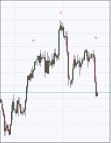 Re: HCH casi perfectosGrafico EURO YEN de fecha 1o de AGOSTO/011, donde forma un HCH -no perfecto- pero en este caso le llaman C-H "o la famosa -V- invertida"